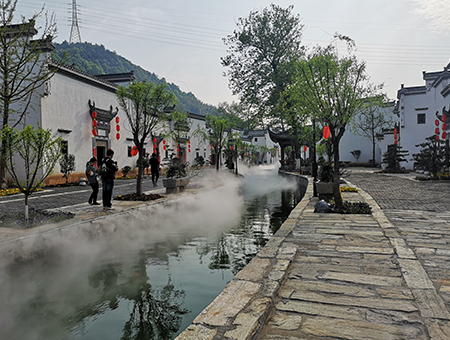 概述:這是一個人造景觀老街,150米的主干道已經(jīng)全線貫通。工人們正在將從各地“淘”來的古建筑材料裝飾到沿街的古宅、戲臺、祠堂等單體項(xiàng)目上,完成工程建設(shè)的大后一道工序。為了創(chuàng)造一個重頭戲,增強(qiáng)旅游事業(yè)來吸引更多的游人來此旅游,在十里銀杏長廊八都岕打造一座現(xiàn)代的仿古建筑----八都岕長興老街。其煙霧繚繞的霧景為這個老街增添了一絲神韻,也讓人造霧的技術(shù)更加的融入到人們的生活當(dāng)中去。